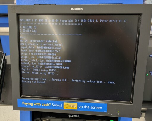 skiguy0123@lemmy.ca to Linux@lemmy.ml · 7 days agothe self checkout machines at Walmart need a reboot. syslinux 6.03lemmy.caimagemessage-square29linkfedilinkarrow-up1249arrow-down15