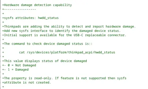 It turns out newer ThinkPads will begin communicating detected hardware damage that can then be parsed by the OS. A new patch to Lenovo’s ThinkPad ACPI open-source driver explains: