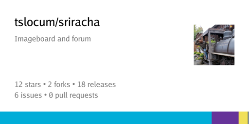 cm0002@toast.ooo to Linux@programming.dev · 19 days agoSriracha imageboard and forum (written in Go, supports Docker)codeberg.orgexternal-linkmessage-square1linkfedilinkarrow-up113arrow-down10