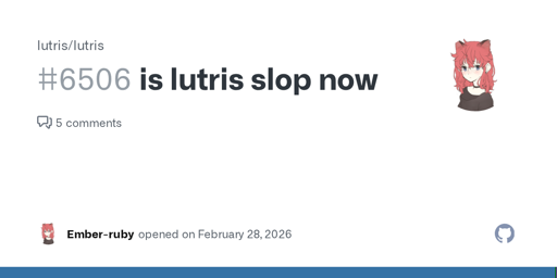 arrow-up1683arrow-down1external-linkLutris maintainer: "I've removed the Claude co-authorship from the commits a few days ago. So good luck figuring out what's generated and what is not."github.combdonvr@thelemmy.club to Linux Gaming@lemmy.worldEnglish · 13 days agomessage-square287linkfedilinkfile-text