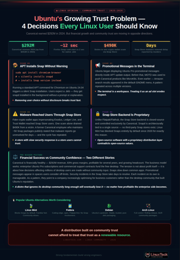Ek-Hou-Van-Braai@piefed.social to Linux@programming.devEnglish · 4 days agoUbuntu's trust problem in 4 concrete issues - verified facts, no FUDlockmedia.piefed.socialimagemessage-square168linkfedilinkarrow-up1489arrow-down147